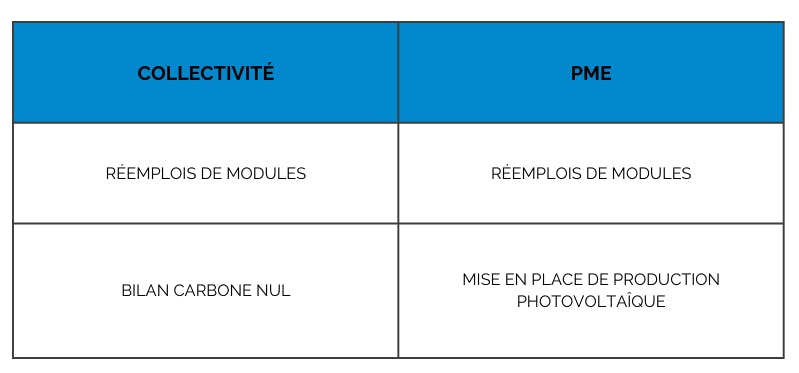 La PME a une volonté de mettre en place une production photovoltaïque. Mais elle exprime dans sa politique RSE « Je ne veux pas faire appel à des modules photovoltaïques neufs, je suis capable d’accepter une petite dégradation de mes performances de production. » Cela nous amène donc à mettre en place une filière dont les modules seraient récupérés et requalifiés, avec la possibilité de fonctionner 10 à 15 ans de plus.